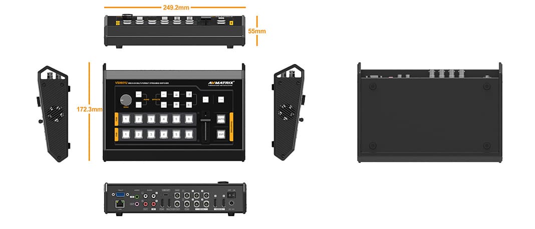 Avmatrix VS0601U là dòng bộ chuyển đổi giá rẻ nhưng hỗ trợ cả HDMI và SDI đầy đủ chức năng chuyên nghiệp với 6 cổng vào: 4×SDI & 2×HDMI. VS0601U khá nhỏ gọn, bạn có thể mang bất cứ nơi đâu và biến nó thành show truyền hình di động không mất nhiều công sức.