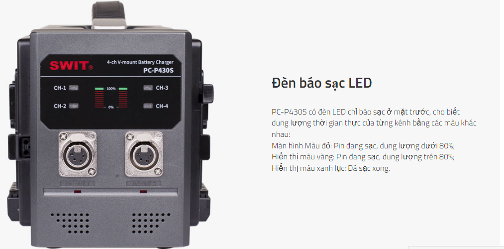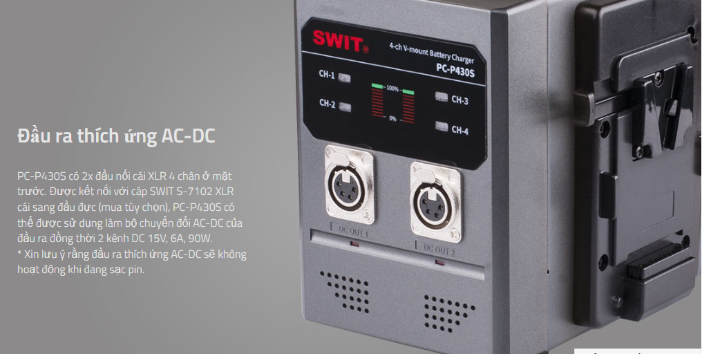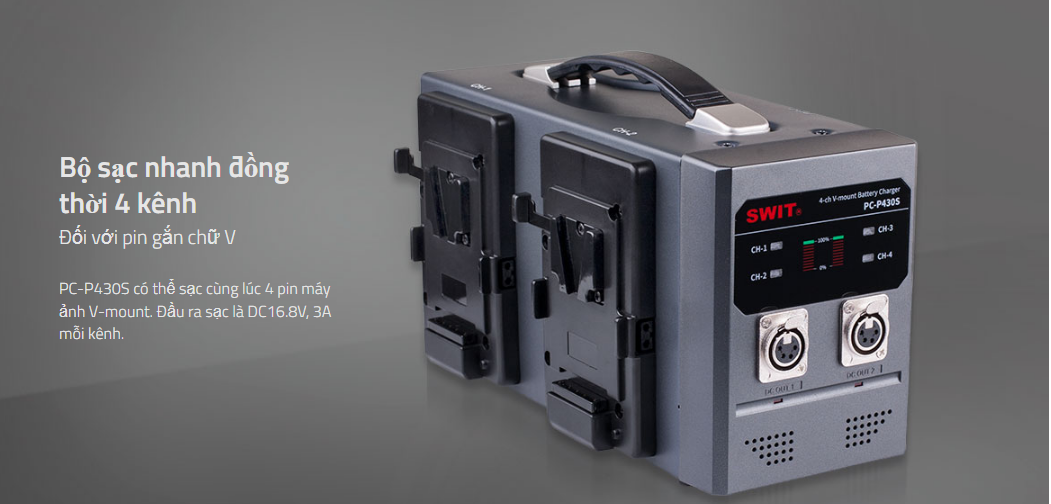 SWIT Bộ sạc siêu nhanh 4-ch V-mount PC-P430S| Pin Máy Ảnh