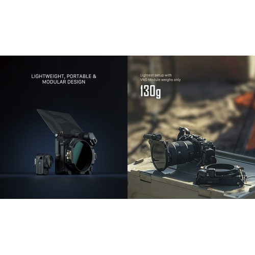 Với mô-đun Variable ND được thiết kế mới (tùy chọn), được phát triển với sự cộng tác chặt chẽ của các nhà sản xuất quang học hàng đầu, mô-đun VNĐ có nhiều cấu hình, nhẹ nhất chỉ 130g.
