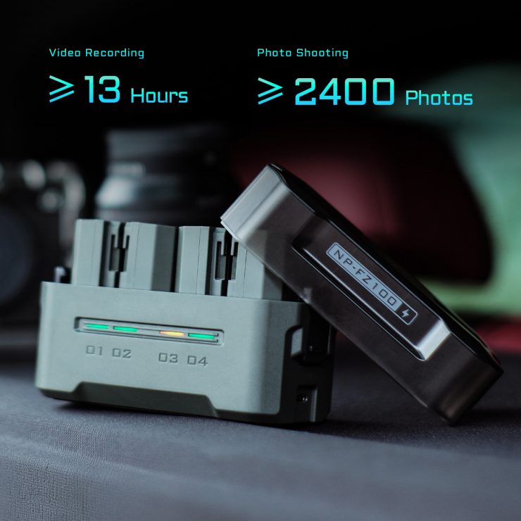 Với khả năng sạc đầy bốn pin NP-FZ100, người dùng có thể quay video liên tục tới 13 giờ hoặc chụp 2.400 bức ảnh, hoàn hảo cho những buổi chụp ảnh dài.